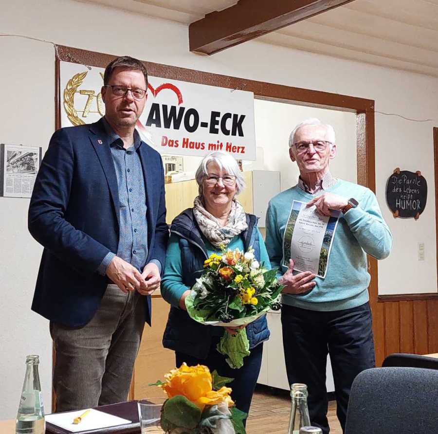 Versammlungsleiter und Bürgermeister Marcus Heintel würdigte in seiner Ansprache die jahrzehntelange, unermüdliche Arbeit von Engelbert Ripp an der Spitze des Vereins und seine zentrale Rolle bei der Pflege der deutsch-französischen Freundschaft. Als Zeichen der Anerkennung überreichte er Ripp eine Urkunde, einen Restaurantgutschein sowie einen Blumenstrauß für dessen Ehefrau Regina Ripp.